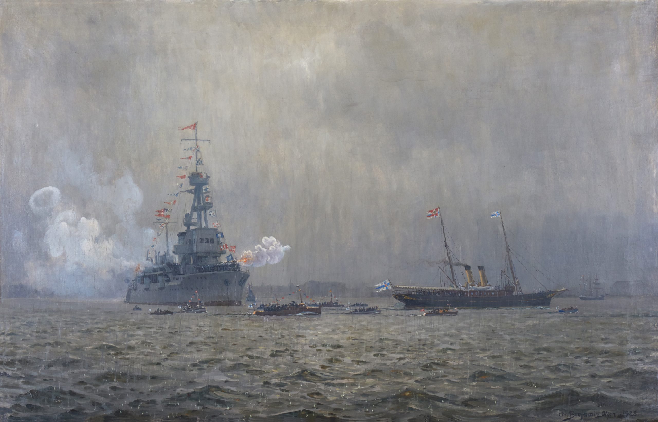 丹麦军舰 “尼尔斯・尤尔” 号向芬兰船舶 “埃莱孔” 号致敬